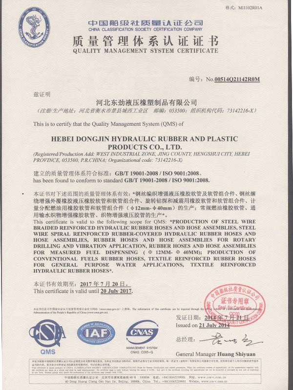 注冊資金7000萬,生產設備300多臺套,檢測設備300多臺件,膠管900萬標米,各類管件接頭2億余件,膠管組合件1億余套。